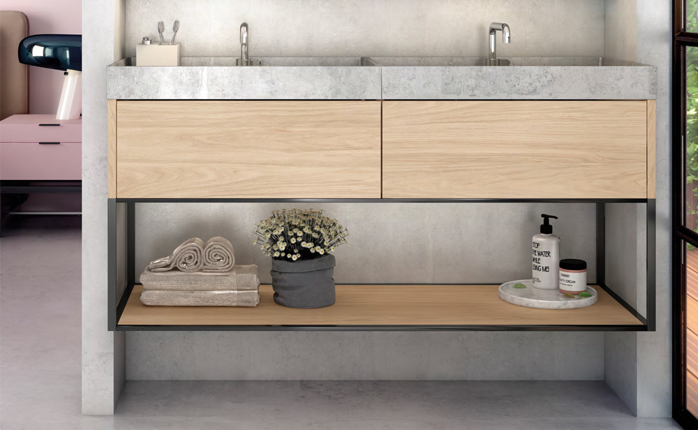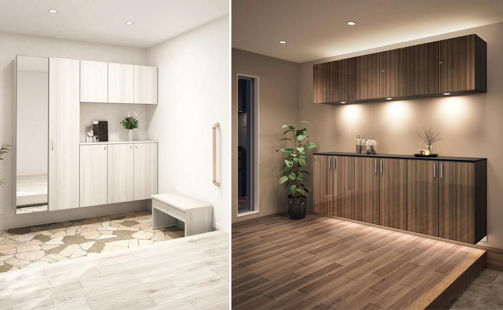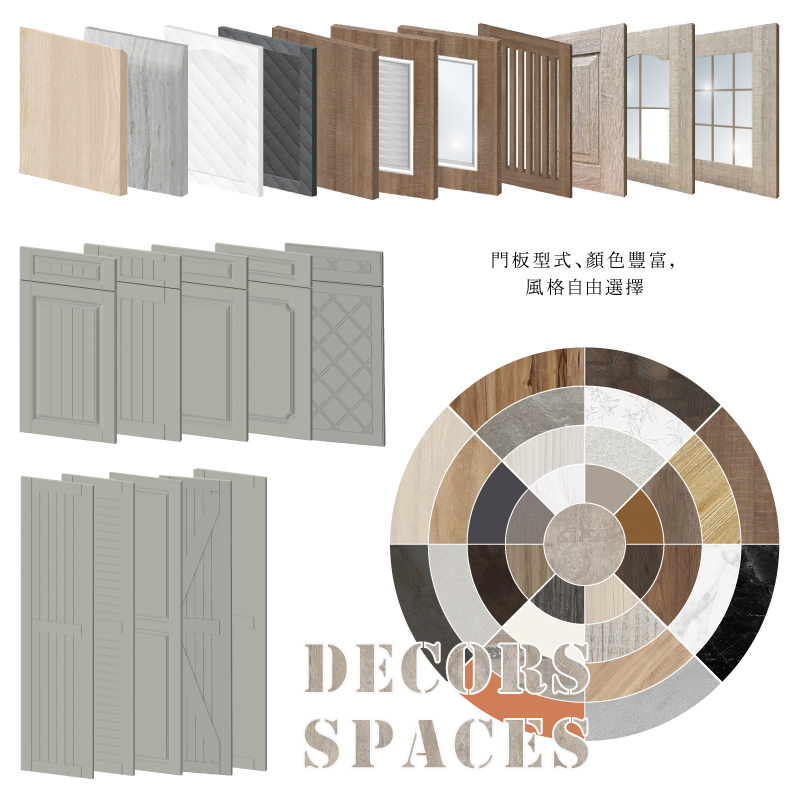可以彈性搭配抽屜、五金,有各式材質、顏色可依設計配置風格。